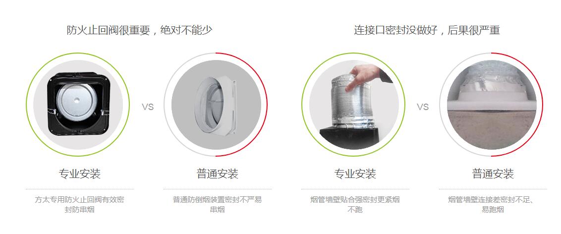 答:(1)方太的止回阀是不锈钢材质,有防火功能。 (2)防止发生倒烟、串味现象