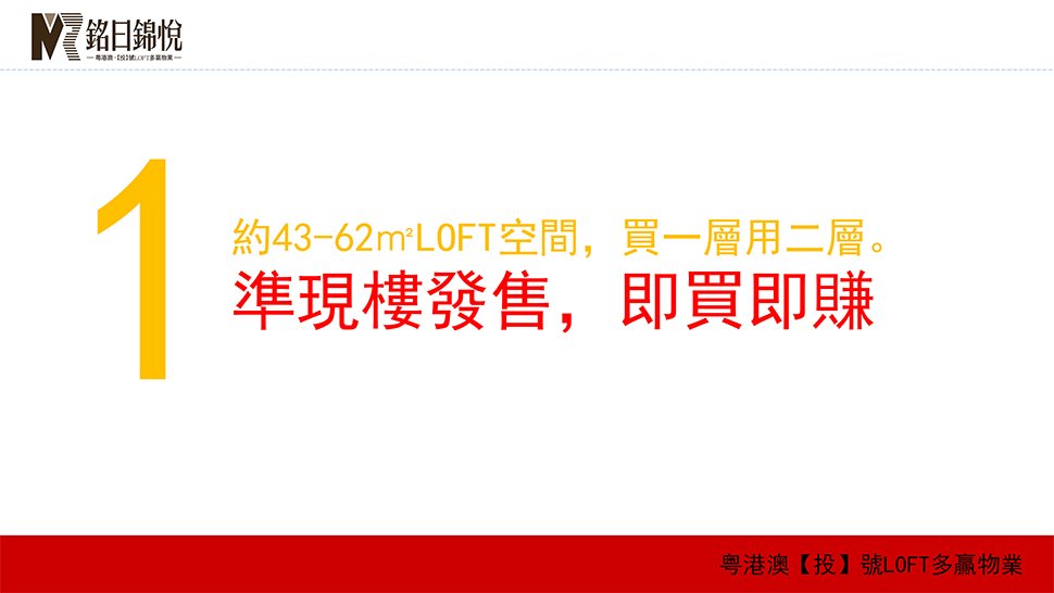 项目主要产品为 4.8 米层高 LOFT 商务公馆,买一层送一层。超高实用率,投资自住两相宜。项目共建 1 幢 13 层 132 户商业公寓楼,3-10 层为复式公寓,11-13 层为平层公寓,商业用户 11 户,1 层为层高 5.9m 商铺,2 层层高 3.7m 商铺,配建地下停车位 68 个。